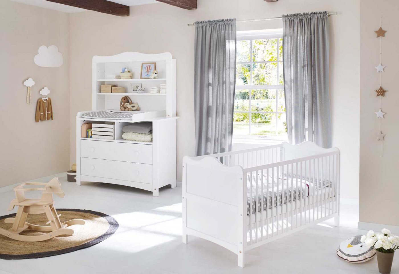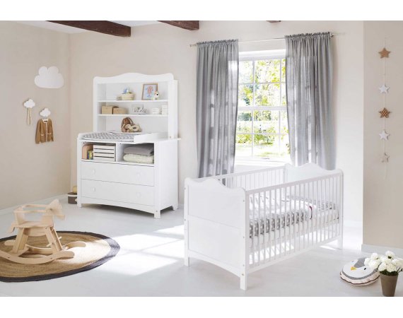 Florentina start møbelsættet består af en ekstra bred puslekommode med ekstra bred reoloverdel og en fin kombiseng