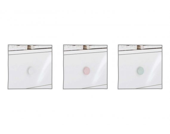 Inklusiv 3 møbelknopper i forskellige farver, hvid, rosa og mint