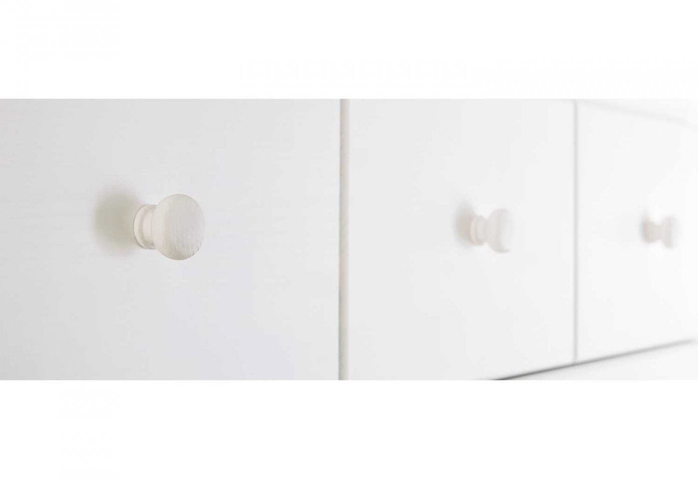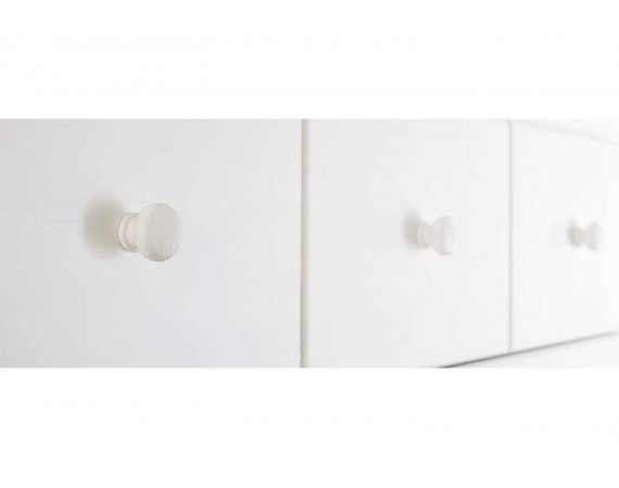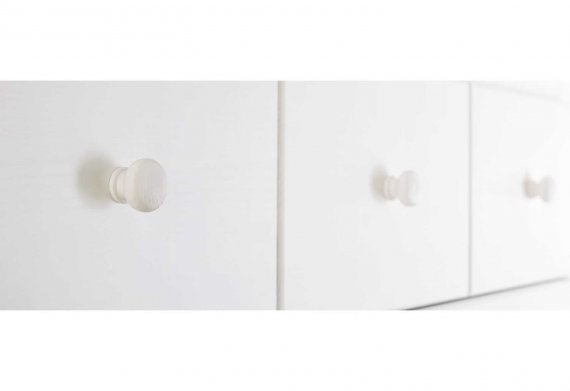 Møbelserien har runde greb i træ og skuffer og skabe har Self-Soft-Close.