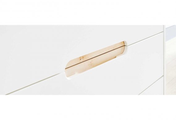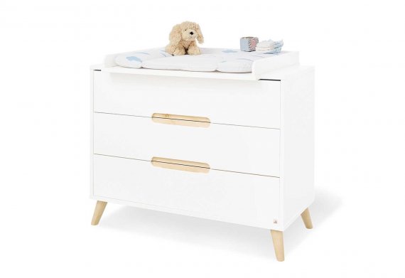 Puslekommoden har tre store skuffer og kommodens forsænkede greb er i massiv ahorn.