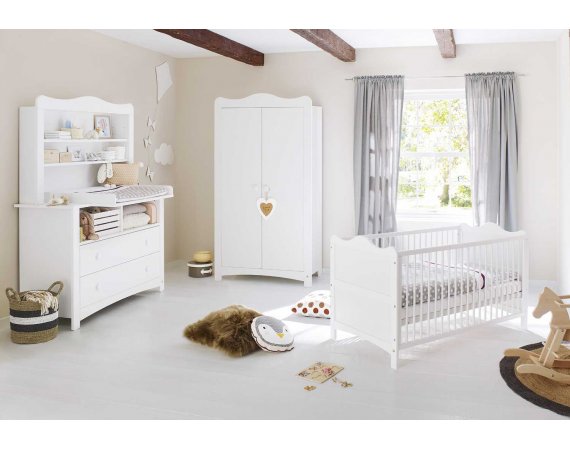Florentina møbelsættet består af en ekstra bred puslekommode, en ekstra bred reoloverdel og en fin kombiseng