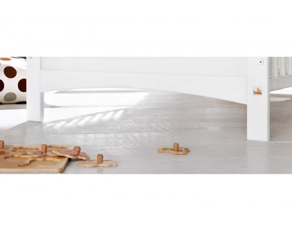 Når dit barn bliver større, kan tremme siderne tages af, de medfølgende 4 klodser til siderne monteres, og du har en fin juniorseng, der kan bruges i yderligere nogle år.