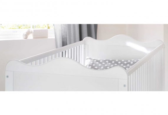Florentina kombiseng har et liggemål, der er større end en almindelig babyseng. Den kan derfor vokse med dit barn. Sengen er stilfuld med runde tremmer og lukkede gavle.