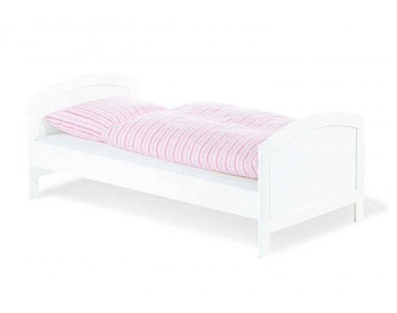 Når dit barn bliver større, kan tremmesiderne tages af, de medfølgende to sidepaneler monteres, og du har en fin juniorseng.