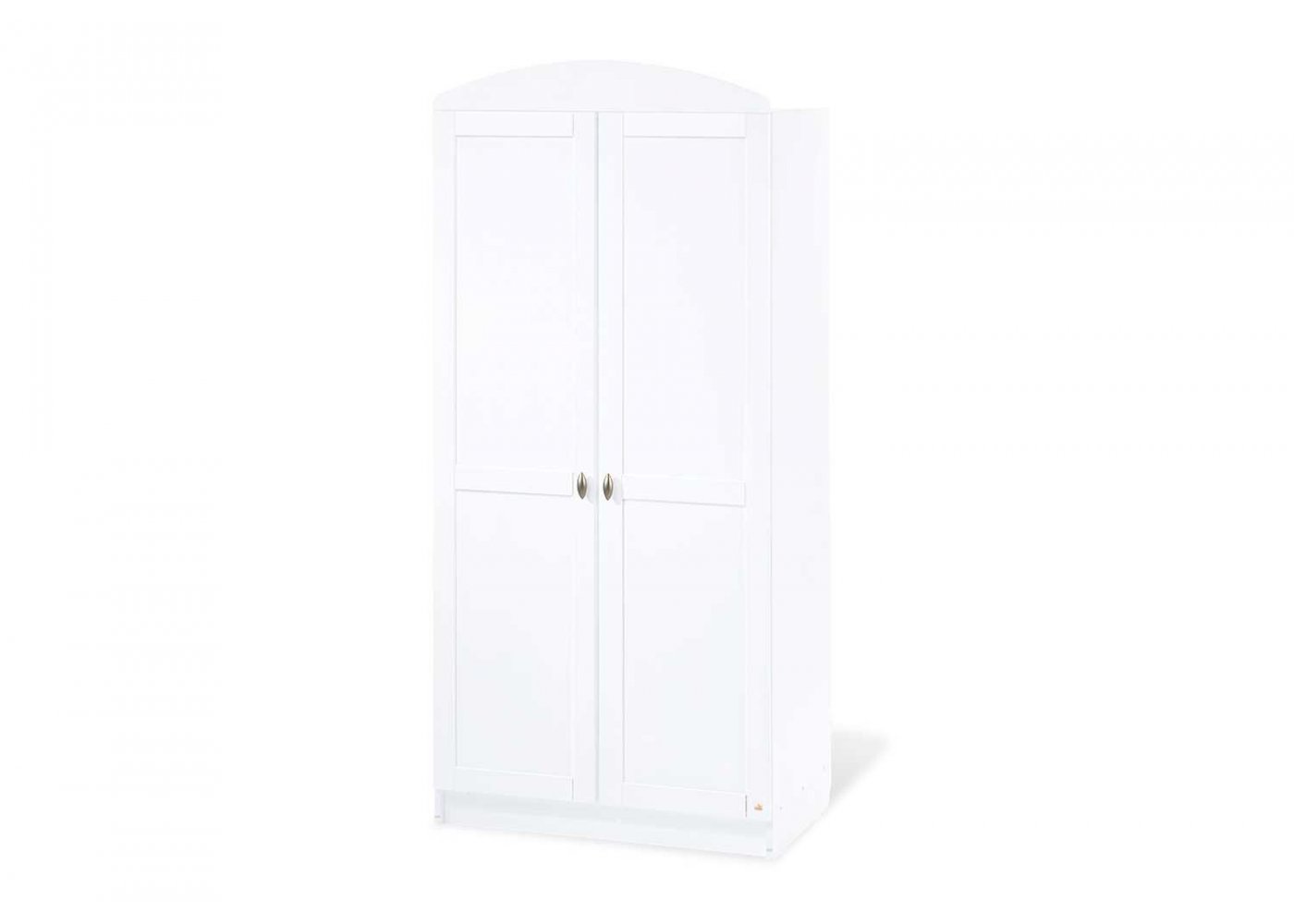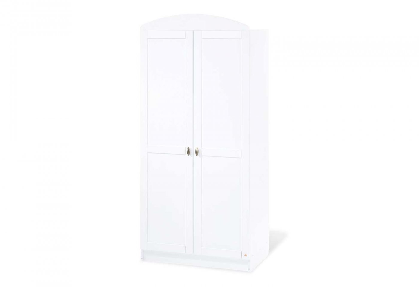 Sættet består af et klædeskab med to låger, en bred puslekommode og en kombi seng.