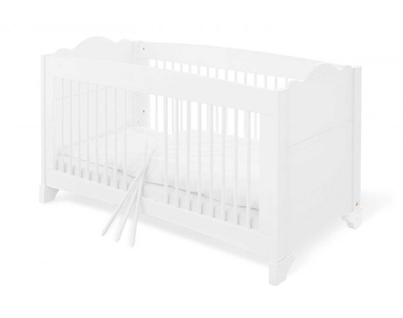 Når dit barn bliver større, kan tremmesiderne tages af, de medfølgende to sider til sengen monteres, og du har en fin juniorseng.