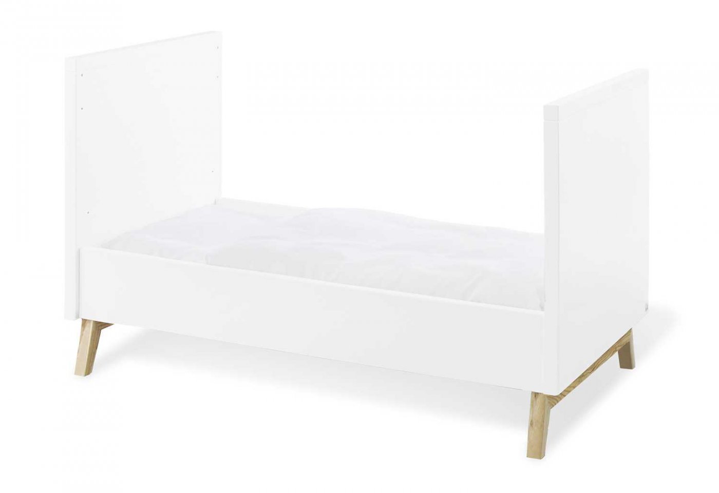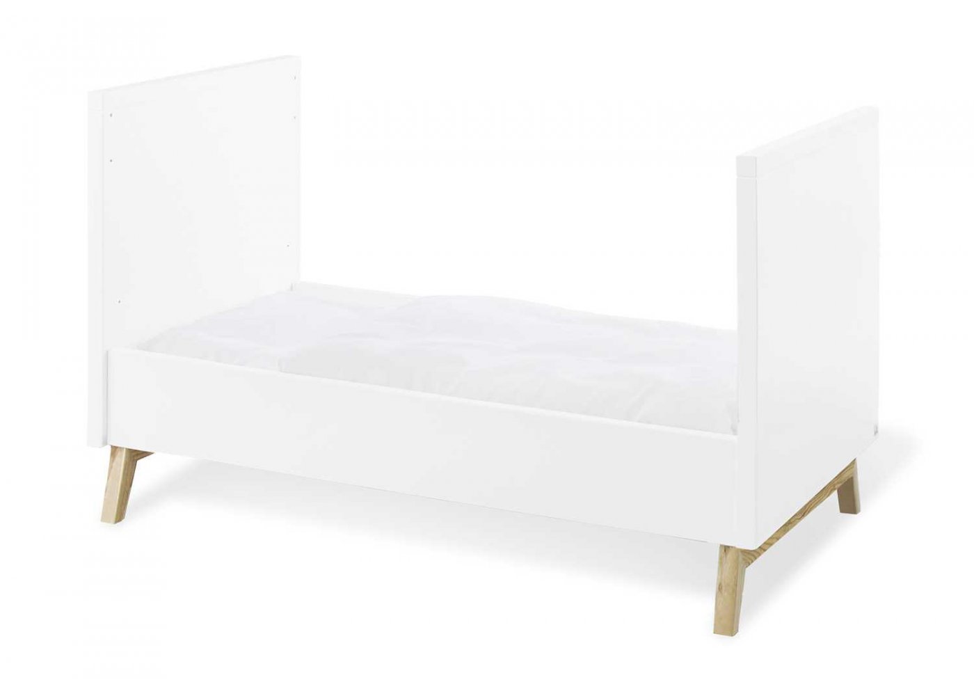 Når dit barn bliver større, kan tremmesiderne tages af, de medfølgende to sider til sengen monteres, og du har en fin juniorseng.