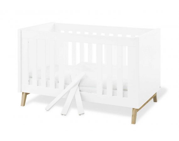 Sengens liggemål er større end en almindelig barneseng og kan derfor vokse med dit barn. Pinolino babysengen har brede tremmer langs siderne og lamelbunden kan justeres og sættes i 3 højder.