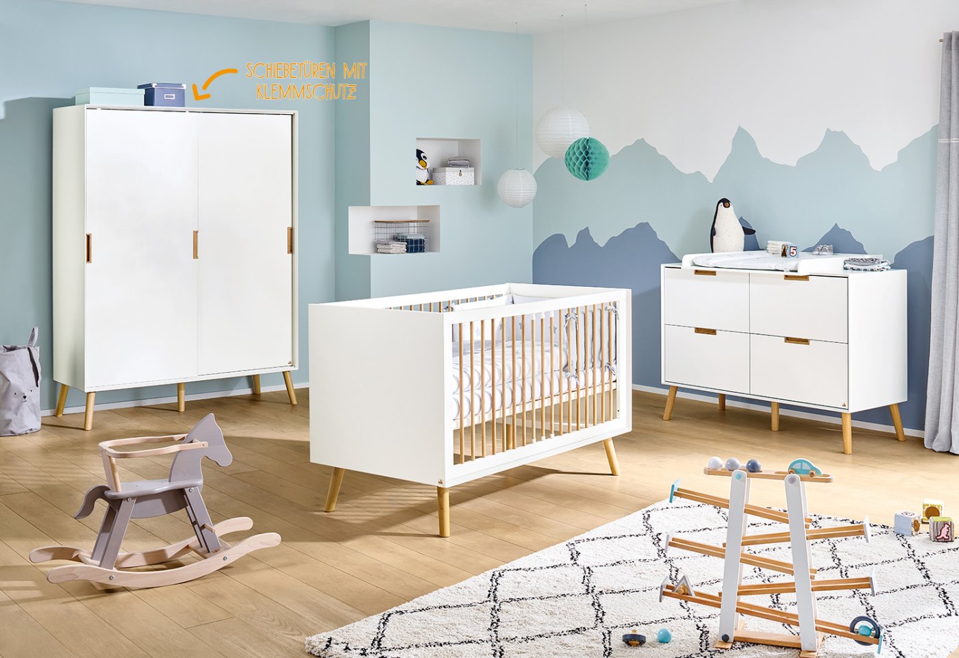 Edge møbelsæt bestående af en børneseng, en ekstra bred puslekommode og et stort klædeskab