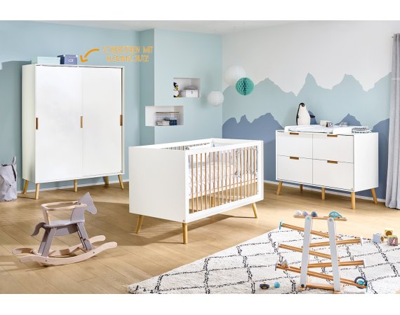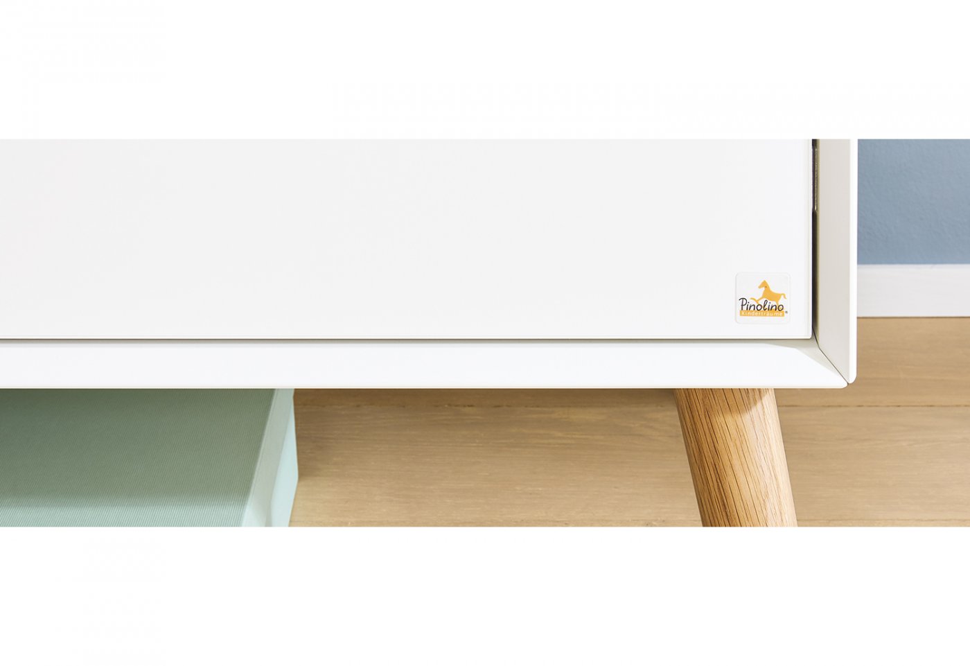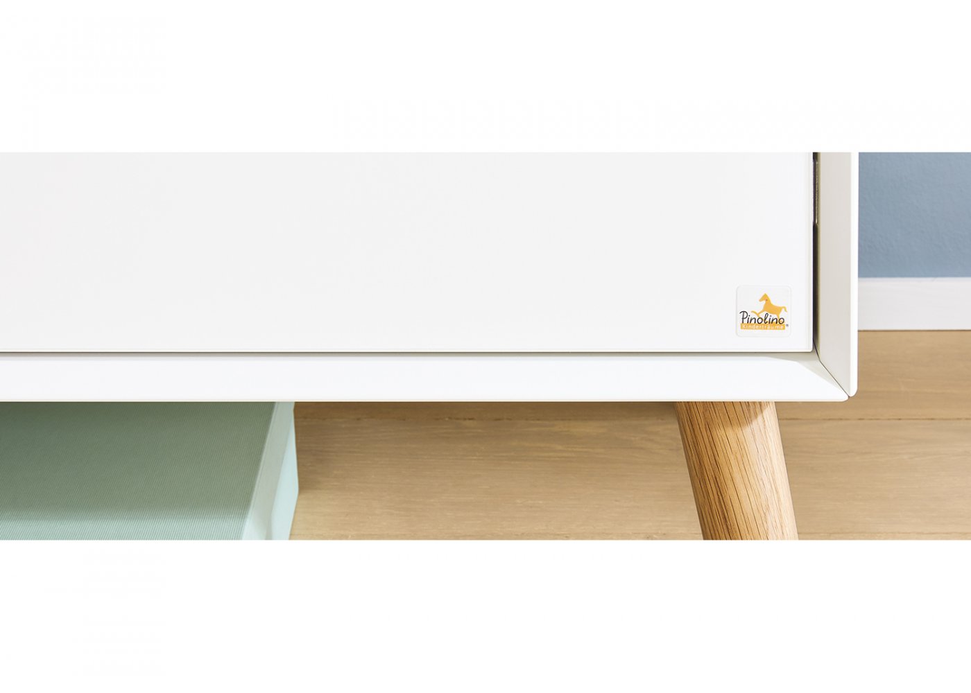 Edge er en skøn børnemøbelserie med skandinavisk naturlighed. Her er der tale om en flot, enkel og sirlig hvidlakeret møbelserie kombineret med massivt egetræ. Børnemøbler der kan sættes sammen med stor set alt. Og som noget naturligt for Pinolino har skuffer og skabe Self-Soft-Close og safe slide, ligesom der ydes 10 års plus garanti på hele Pinolinos sortiment indenfor EU.