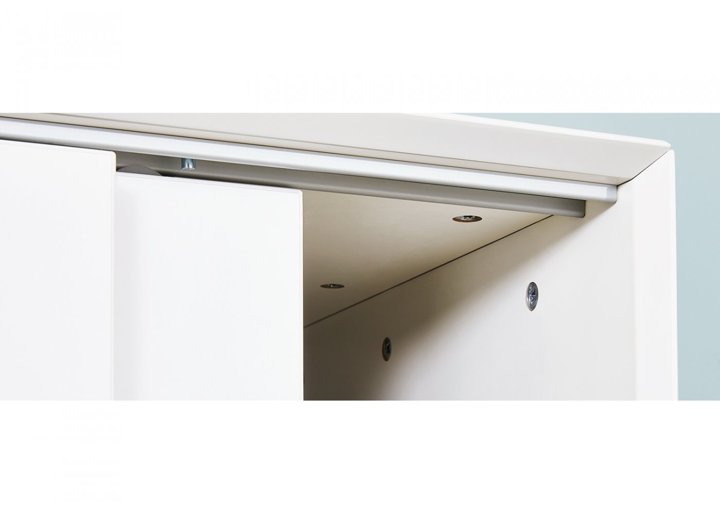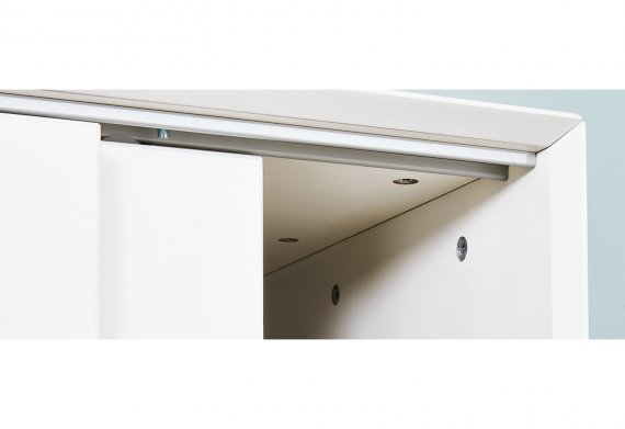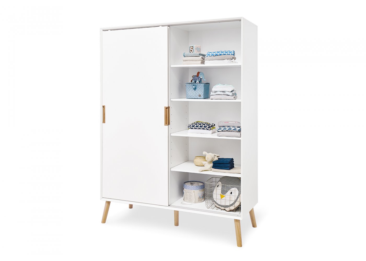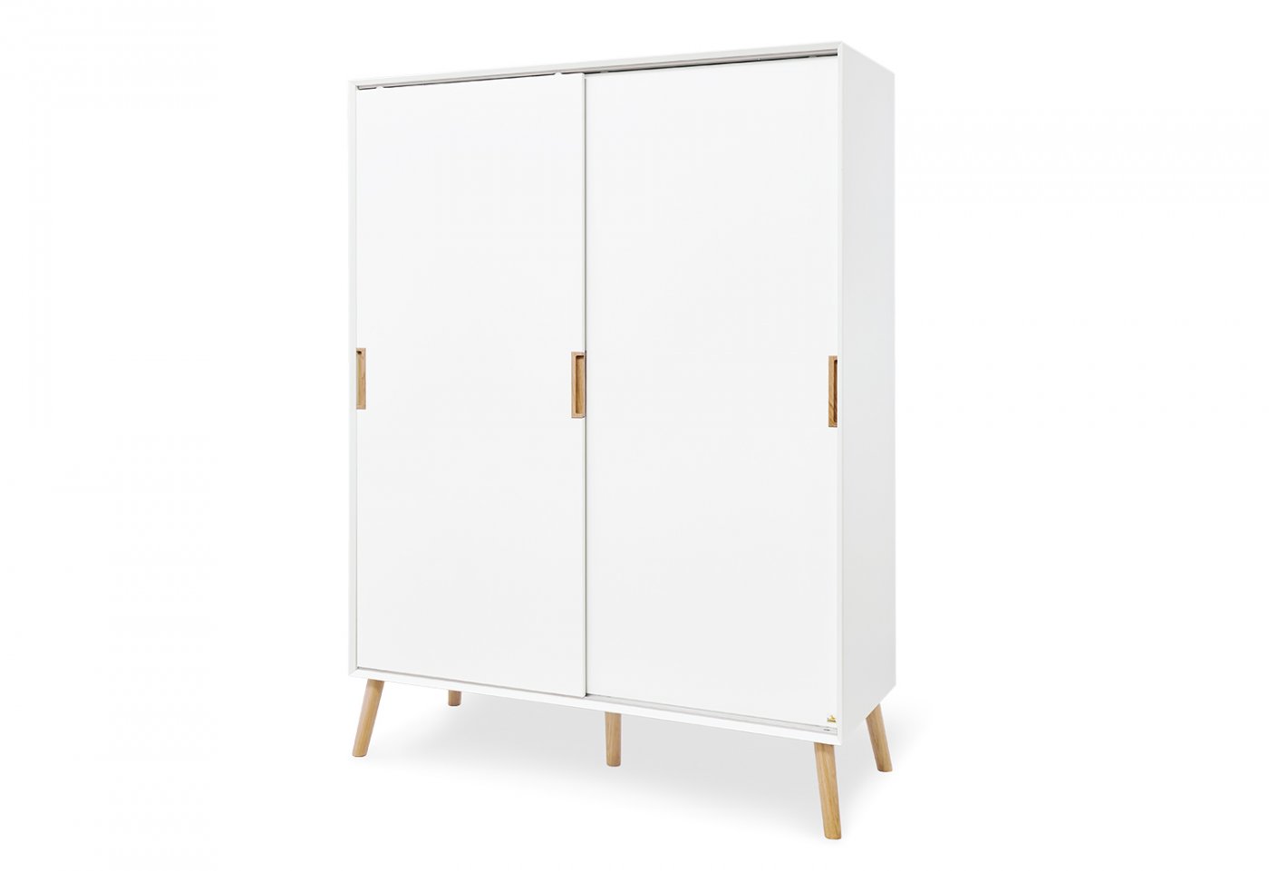 Skabet er praktisk og smart indrettet med to skydedøre, 6 flytbare hylder og en bøjlestang.