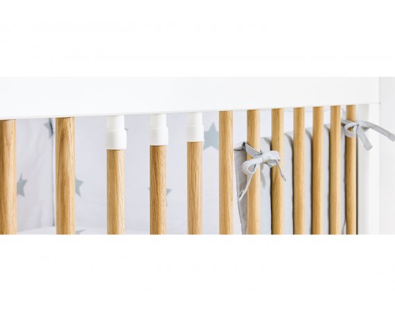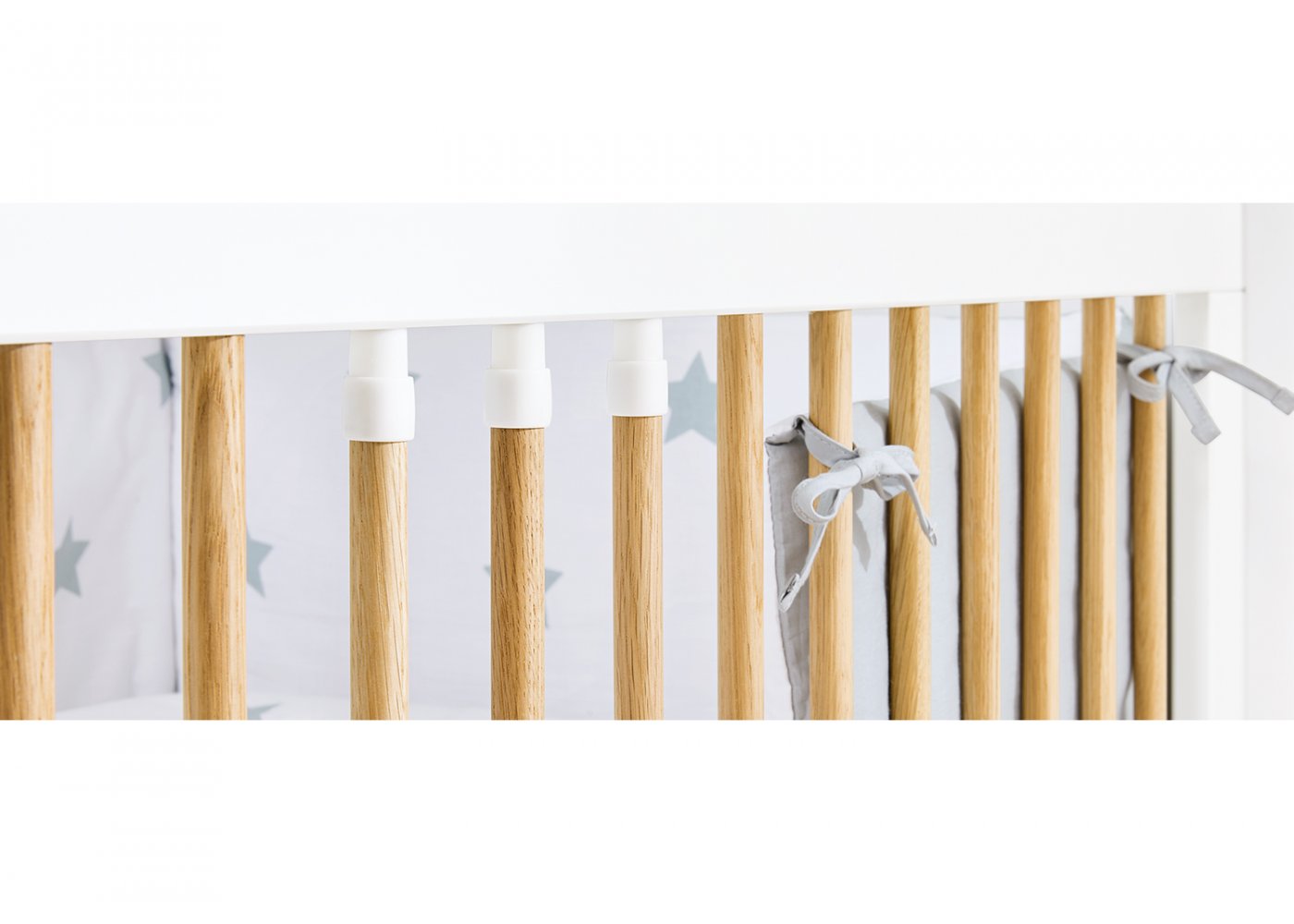I overgangsfasen fra babyseng til juniorseng, kan du starte med at fjerne 3 tremmer i sengen, så dit barn får muligheden for selv at stå op om morgenen. De tilbageværende tremmer sikrer, at dit barn eller dyne ikke falder ud af sengen. En rigtig god måde at blive stor på!