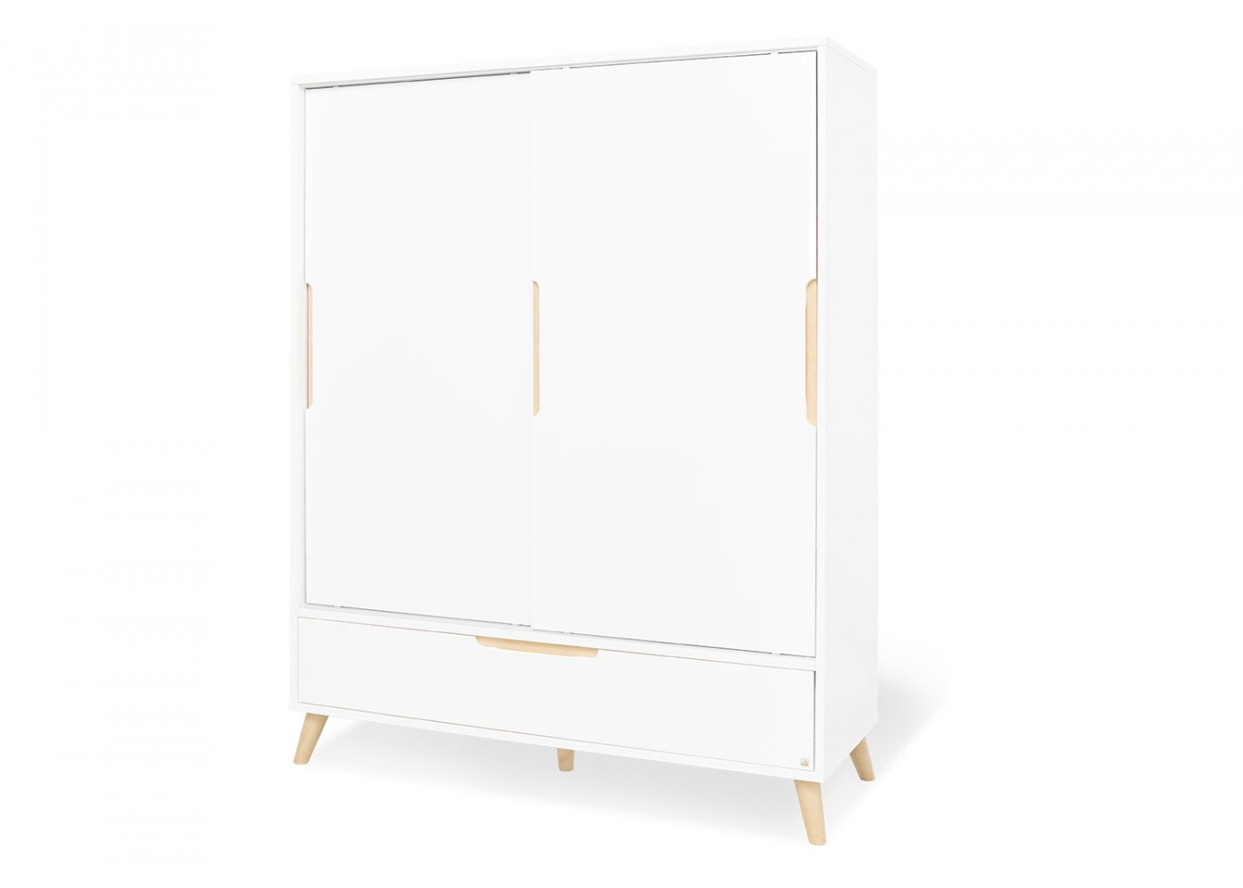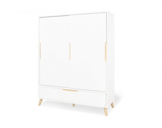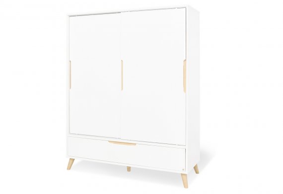 Klædeskabet er rigtig smart med skydedøre og forsænkede greb i massiv ahorn træ.