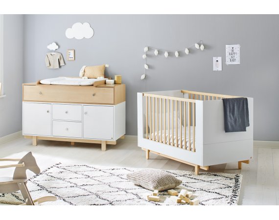 Boks start møbelsæt fra Pinolino består af en ekstra bred puslekommode og en flot kombiseng