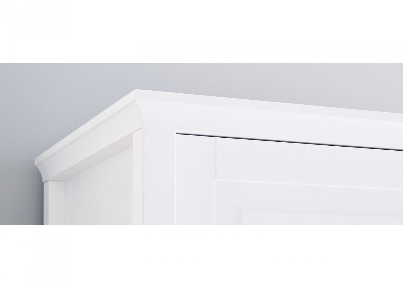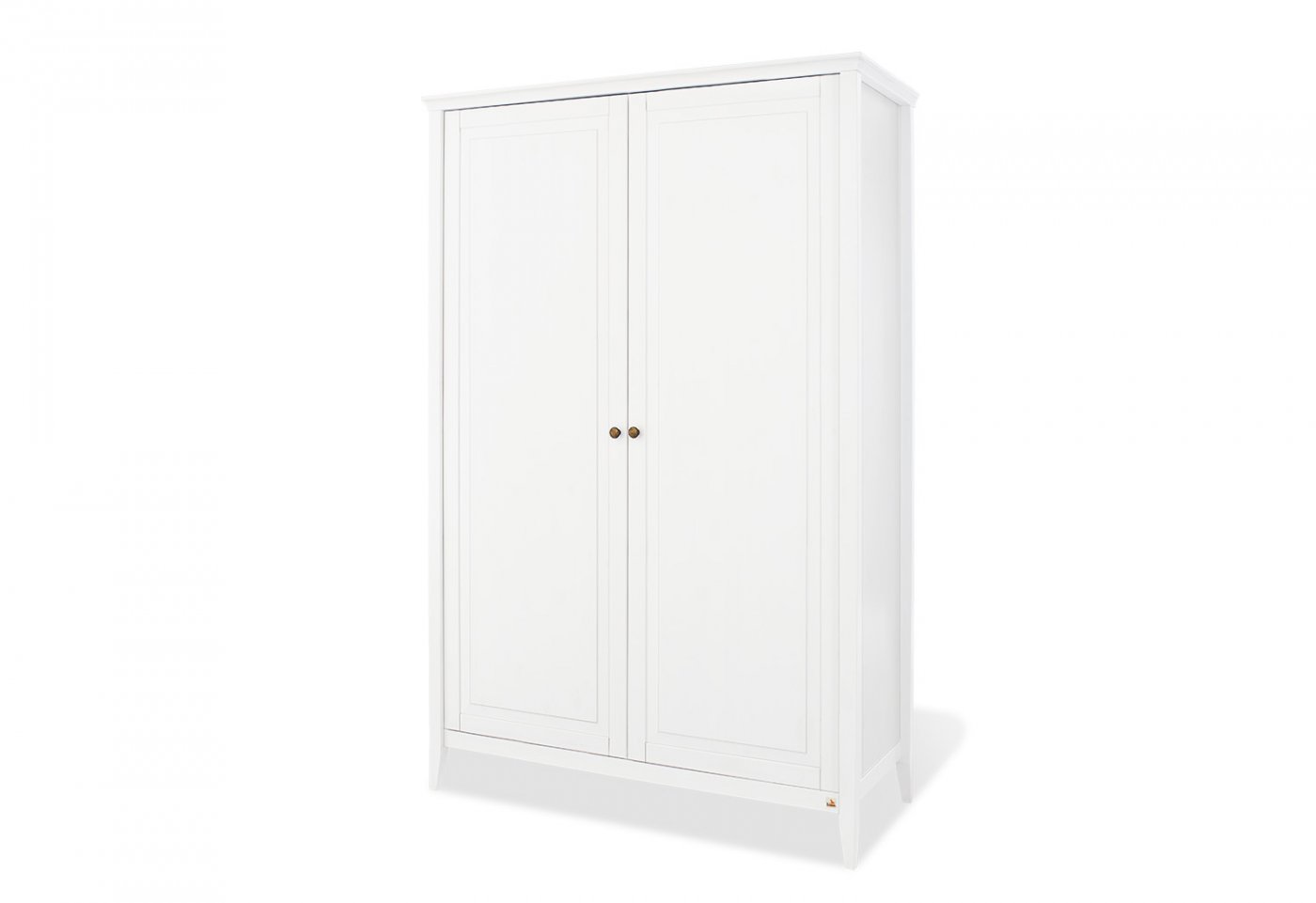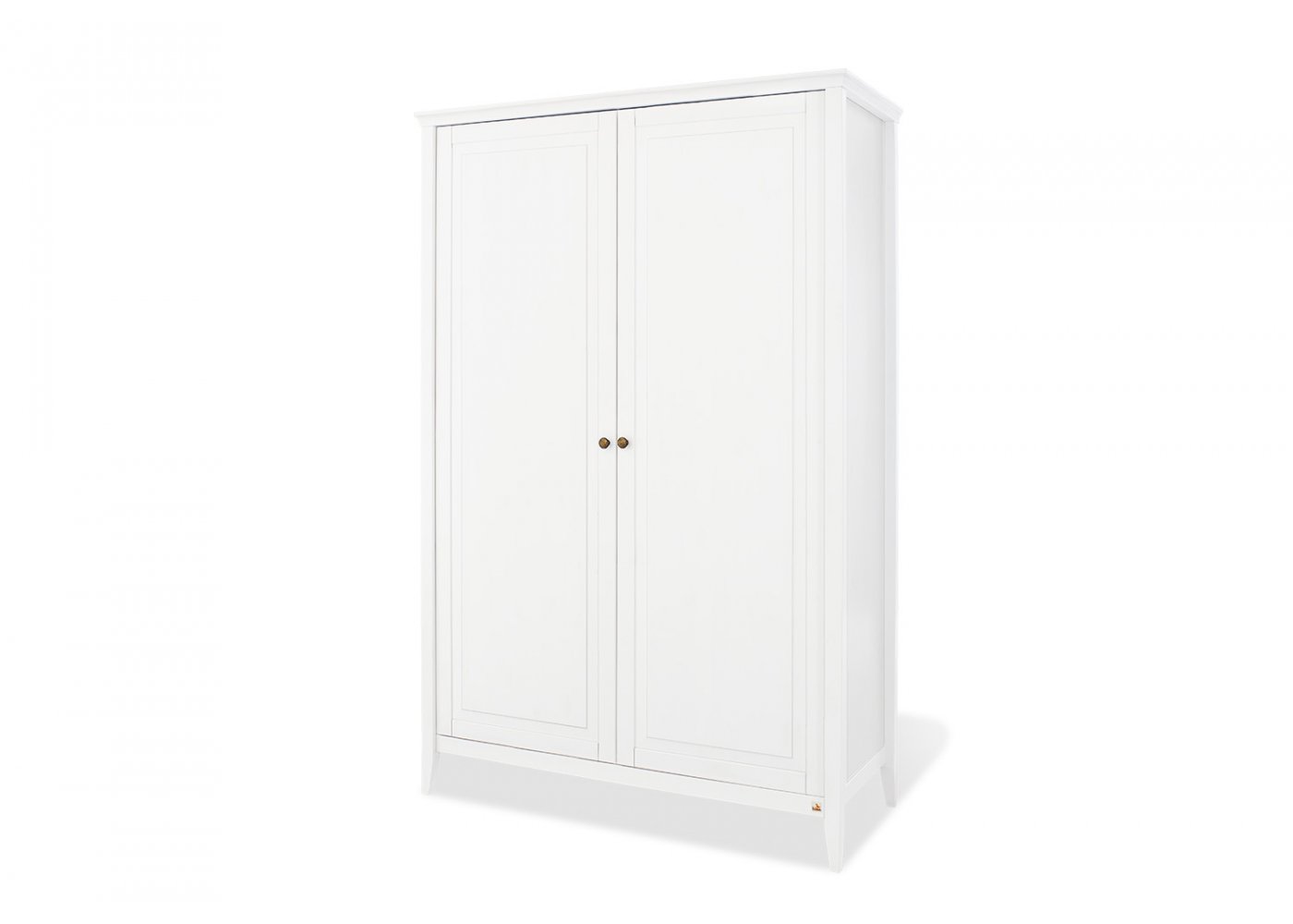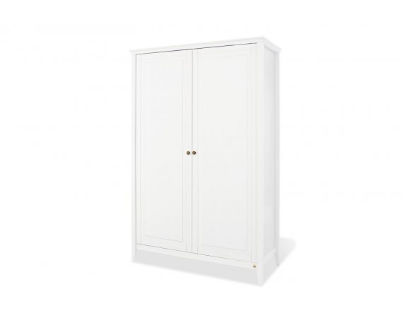 Garderobeskabet Smilla har to døre, og er opdelt i to. Der medfølger seks flytbare hylder til skabet og en bøjlestang. Hvis du har brug for flere hylder, er det muligt at tilkøbe dem.