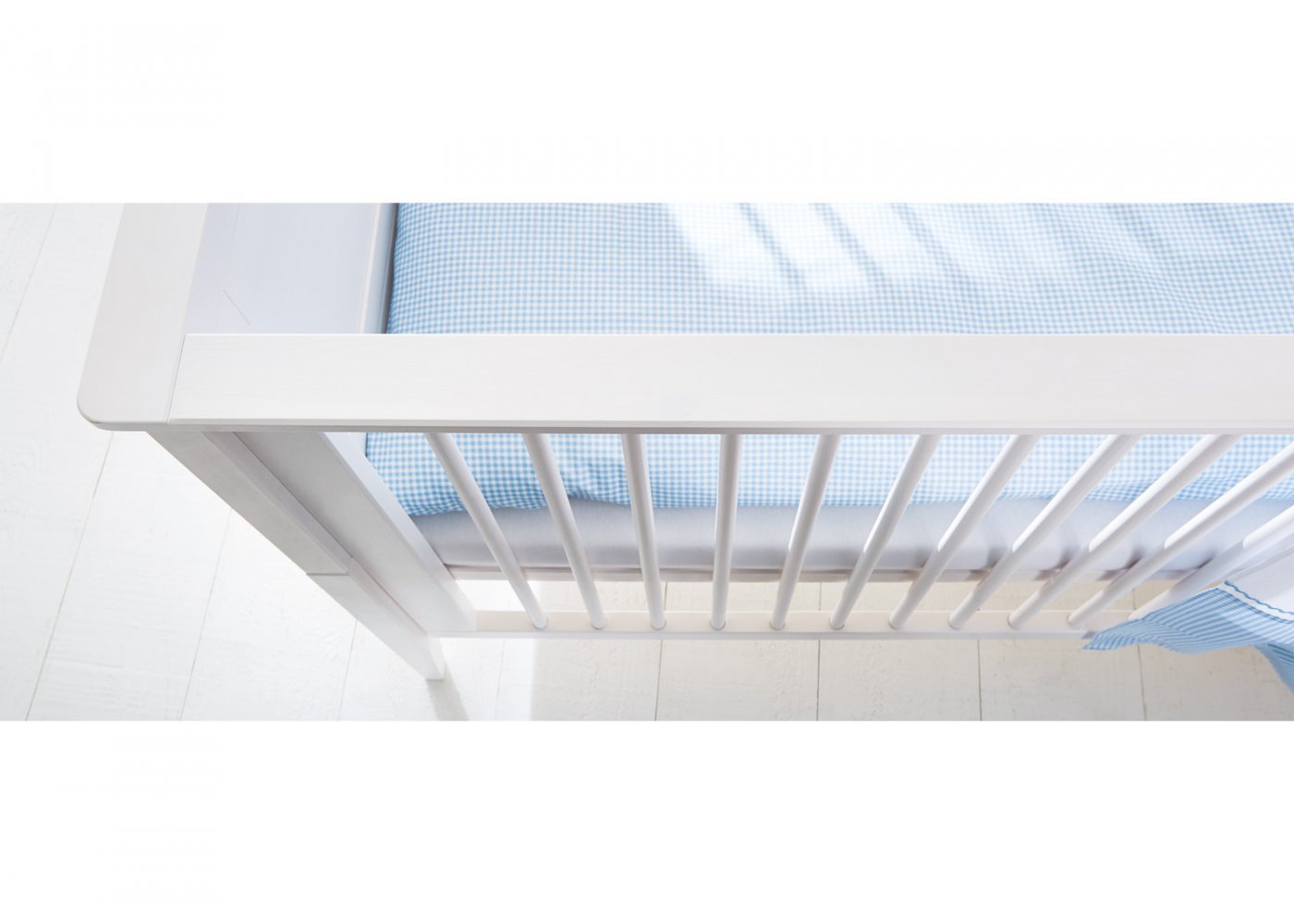 Når dit barn bliver større, kan tremmesiderne tages af, de medfølgende to sider til sengen monteres, og du har en fin juniorseng.