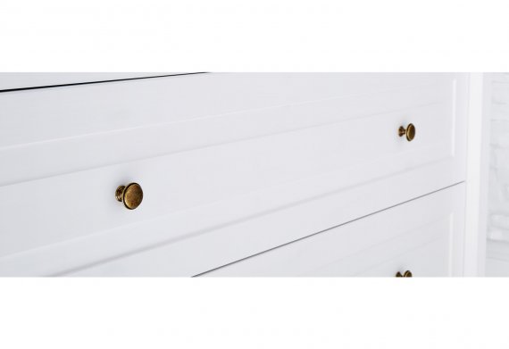 Smilla møbel serien har flotte runde greb i metal og skuffer og skabe har Self-Soft-Close og Soft-Close.