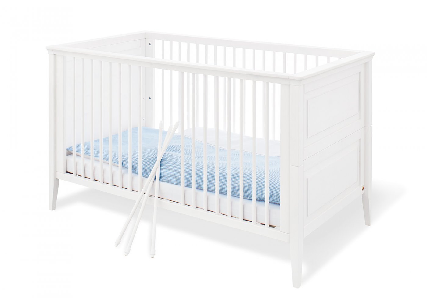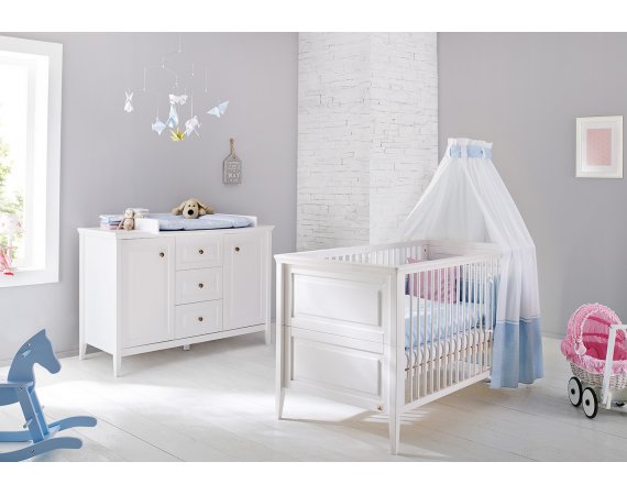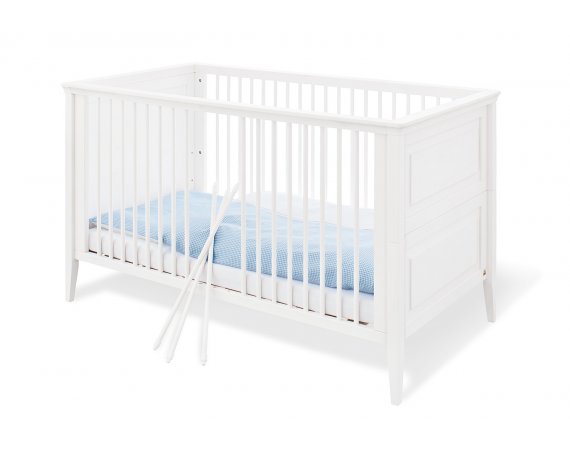 Når dit barn bliver større, kan tremmesiderne tages af, de medfølgende to sider til sengen monteres, og du har en fin juniorseng.