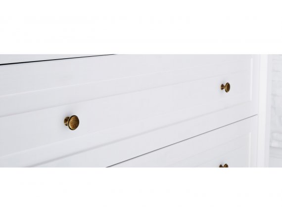 Smilla møbel serien har flotte runde greb i metal og skuffer og skabe har Self-Soft-Close og Soft-Close.