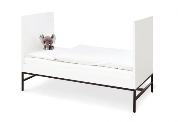 Når dit barn bliver større, kan tremmesiderne tages af, de medfølgende to sidepaneler monteres, og du har en fin juniorseng.