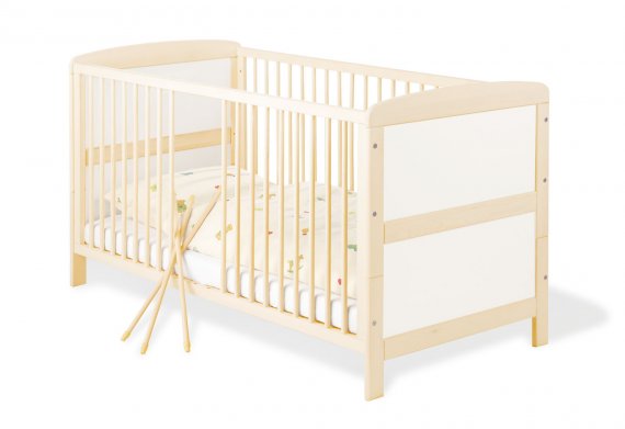 Pinolino sengen har massiv lamelbund og forstærkede sider, der gør den meget stabil. Lamelbunden er justerbar og kan indstilles i 3 højder.