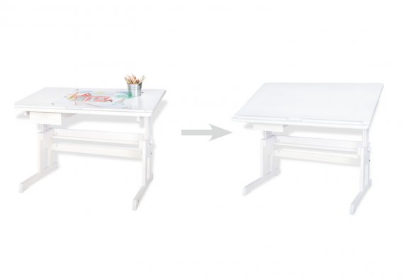 Skrivebordet kan indstilles i fem forskellige højder afhængig af dit barns størrelse og alder. Det er også muligt at skrå stille bordpladen til 55 grader, hvilket gør bordet meget fleksibelt.