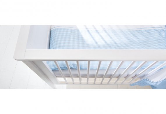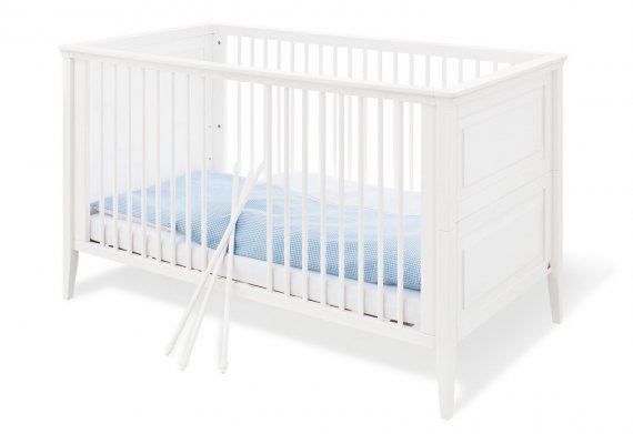 Når dit barn bliver større, kan tremmesiderne tages af, de medfølgende to sider til sengen monteres, og du har en fin juniorseng.