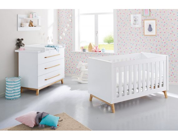 Sengens liggemål er større end en almindelig barneseng og kan derfor vokse med dit barn. Pinolino babysengen har brede tremmer langs siderne og lamelbunden kan justeres og sættes i 3 højder.
