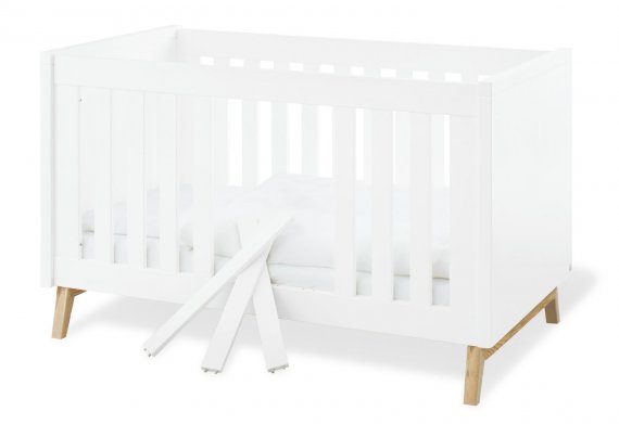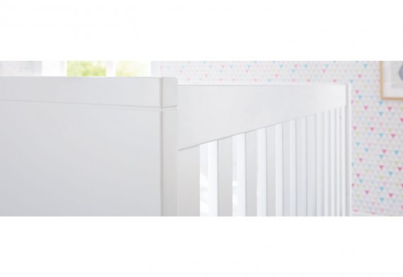 Når dit barn bliver større, kan tremmesiderne tages af, de medfølgende to sider til sengen monteres, og du har en fin juniorseng.