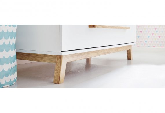 Børneværelses serien RIVA er en smuk møbelserie i skandinavisk design, der forener et nyt og gammelt look, på en hel fantastisk måde. De smukke aske træben i retro stil og lange slanke greb, også i asketræ, er unikt og giver sammen med det moderne look et gedigent og flot udseende.