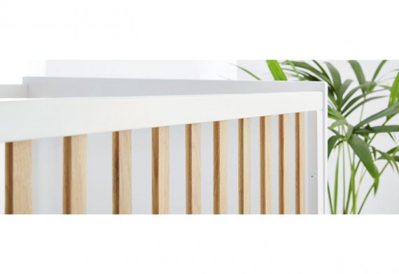 Når dit barn bliver større, kan tremmesiderne tages af, de medfølgende to sider til sengen monteres, og du har en fin juniorseng.