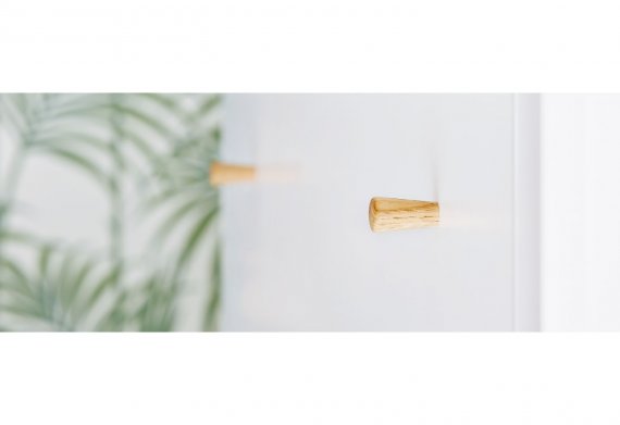 Kommoden har skuffer med Self-Soft-Close og stilfulde slanke kegleformede trægreb.