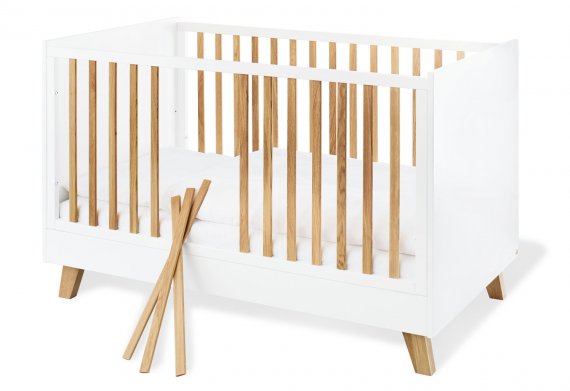 Sengens liggemål er større end en almindelig barneseng og kan derfor vokse med dit barn. Pinolino babysengen er i hvid farve med smalle flade tremmer i træ langs siderne. En sammensætning, der giver et fantastisk look. Sengens lamelbunden kan indstilles i tre forskellige højder.