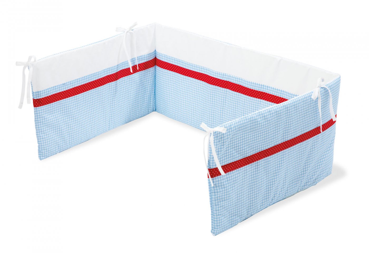 L 165 cm, H 28 cm, egnet til barnesenge 120 x 60 cm og 140 x 70 cm Gennemgående lynlås Stof 100% bomuld Fyld: 3 puder af 100% polyester fleece, kan fjernes individuelt Vaskes ved 60 grader puderne vaskes ved 30 grader Overholder Eco-Tex Standard 100