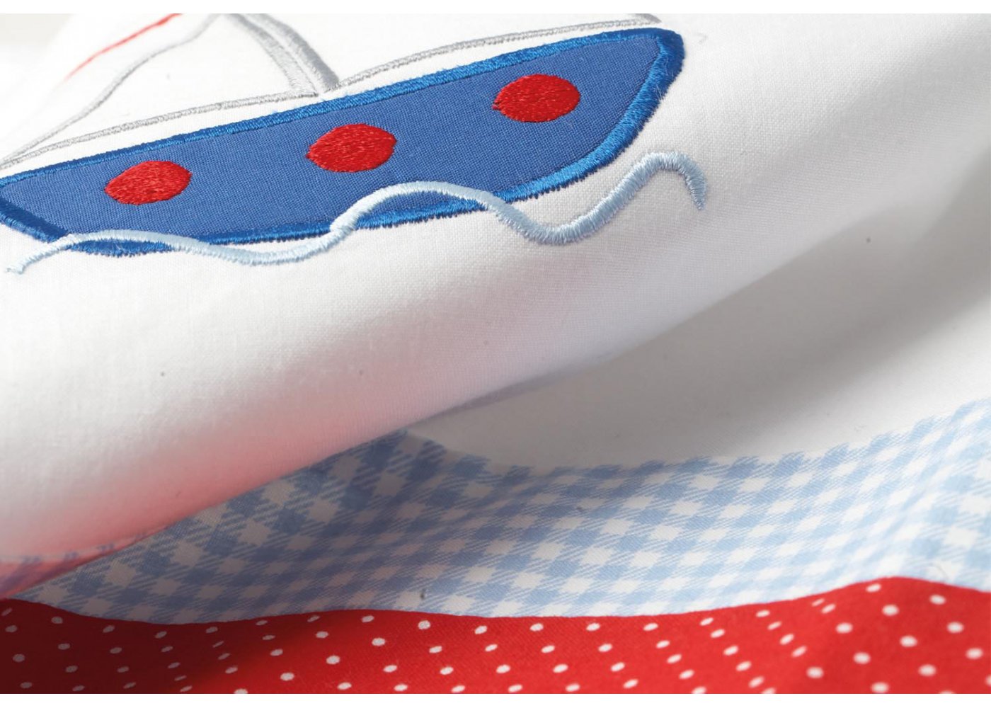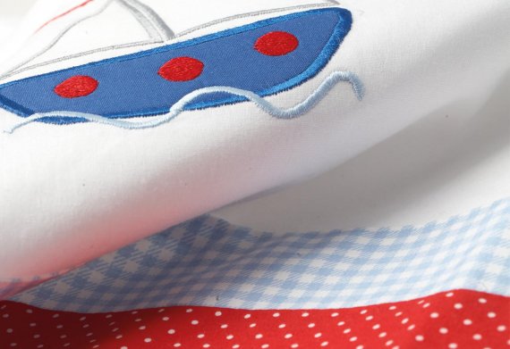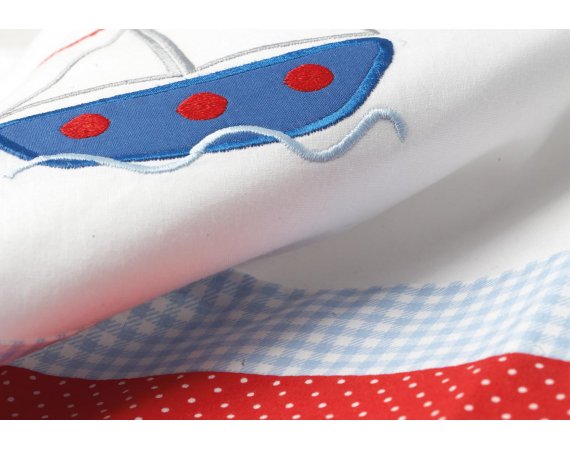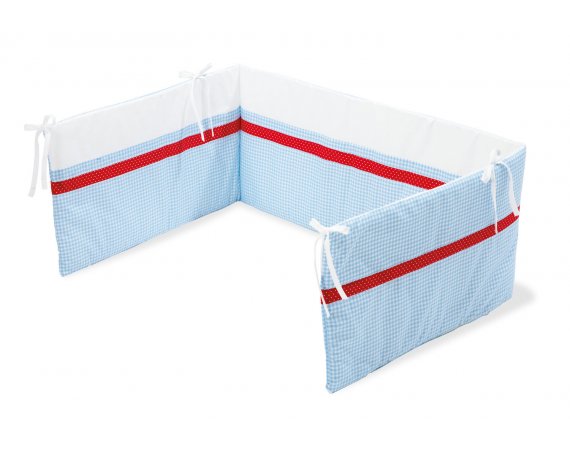 Sengerand fra Pinolino med maritimt mønster i lys blå og rød