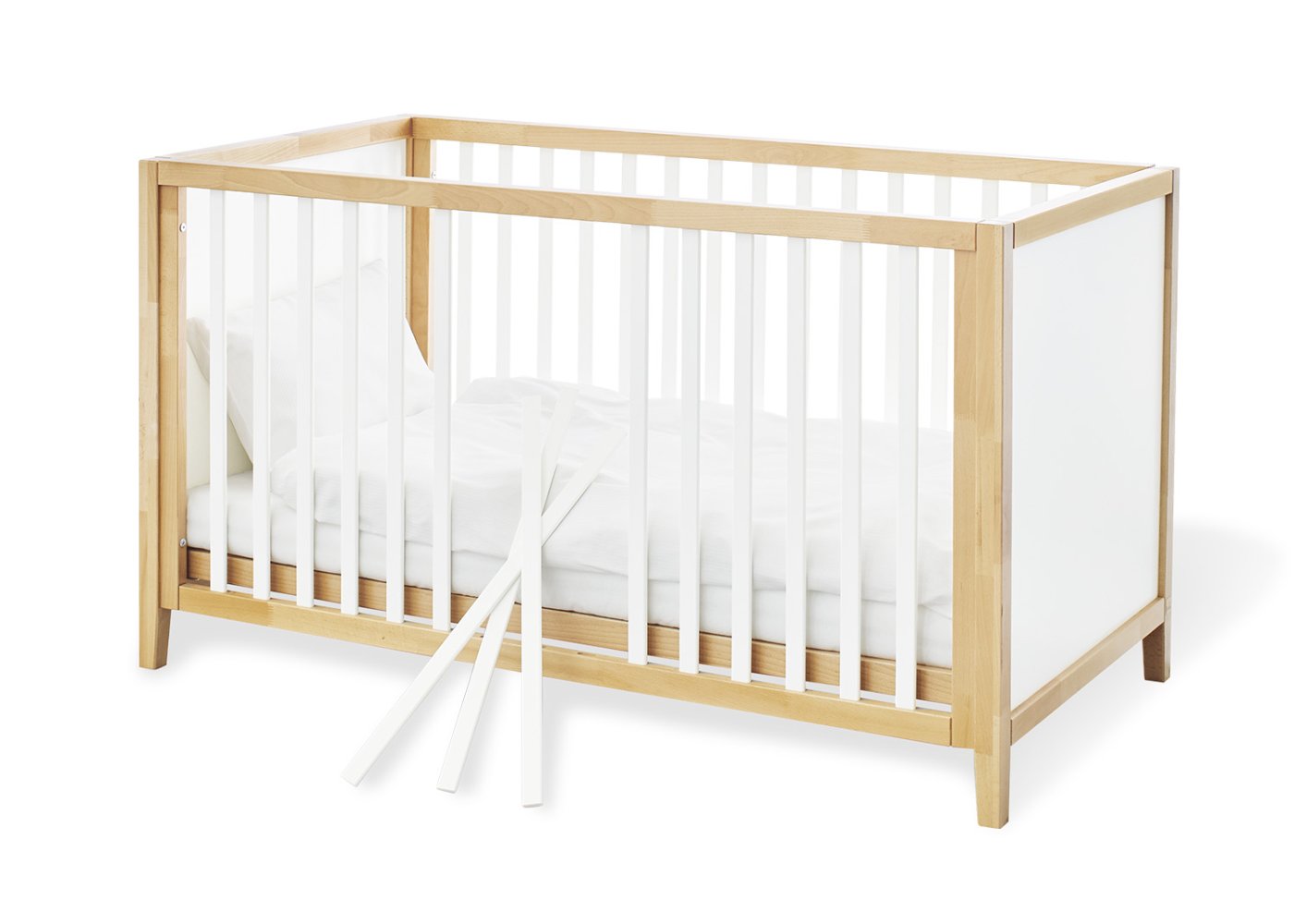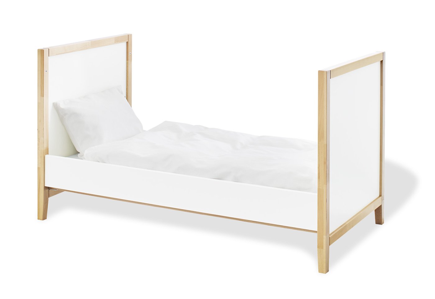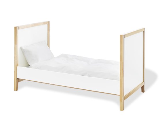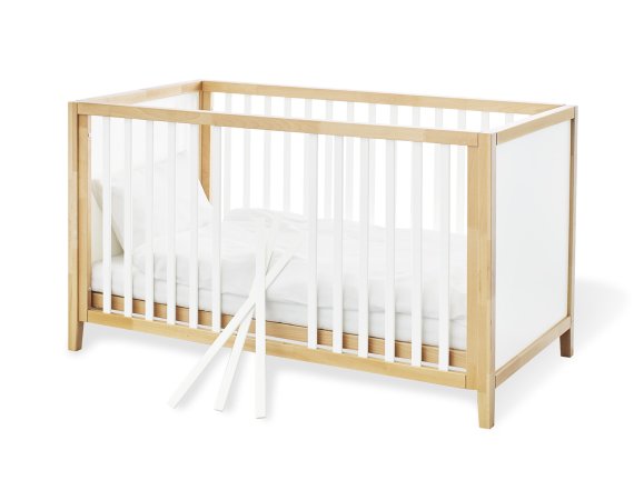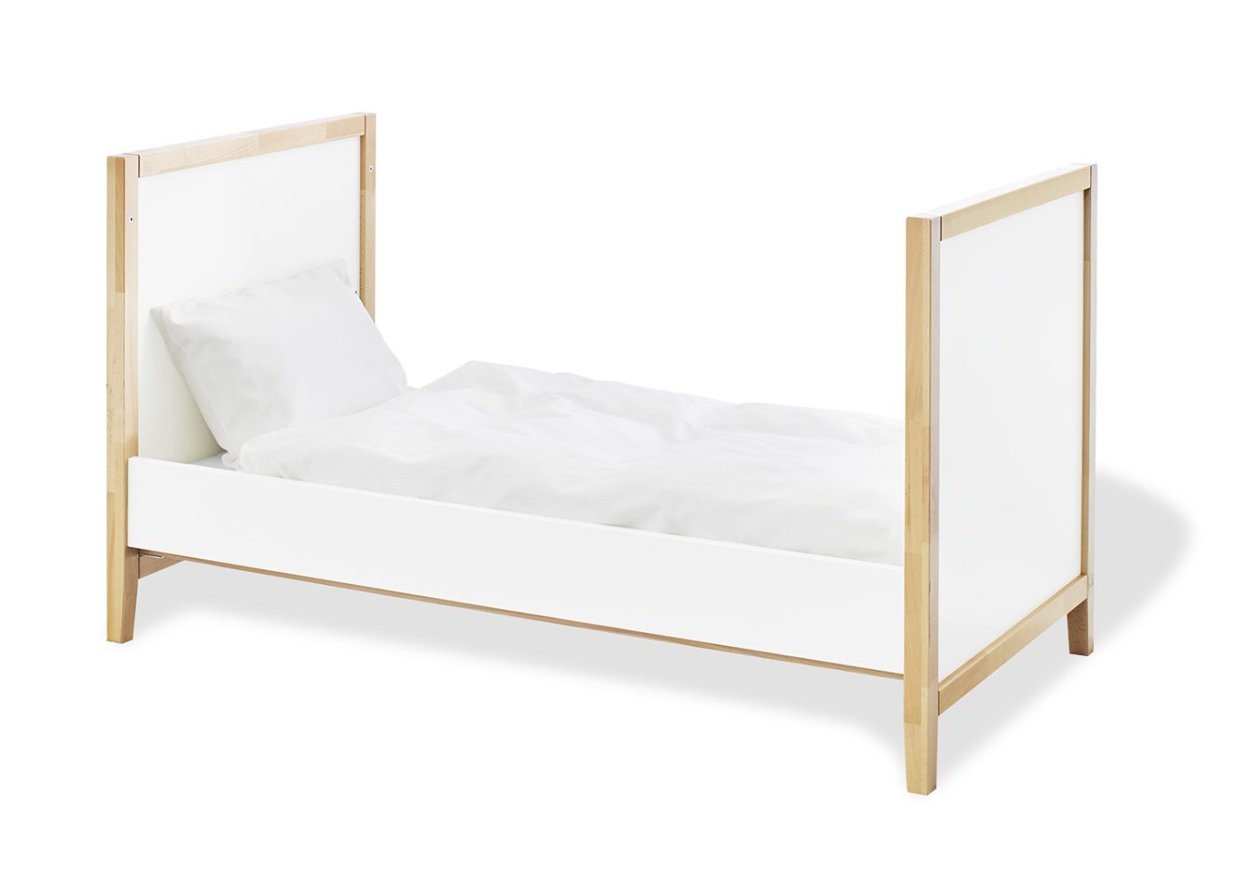Når dit barn bliver større, kan tremmesiderne tages af, de medfølgende to sidepaneler monteres, og du har en fin juniorseng.