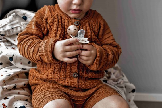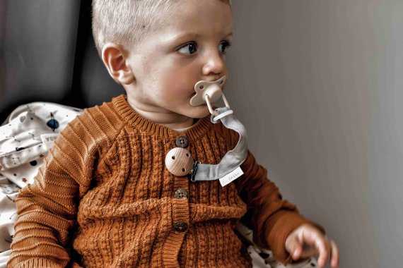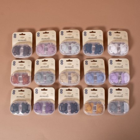 Filibabba Moments sut er en ventil sut med et symmetrisk suttehoved i en lækker varm grå. At det er en ventilsut vil sige, at barnet presser luften ud af sutten, når den bliver brugt. På den måde mindskes risiko for suttebid. Skjoldet har huller for god luft cirkulation og suttedelen er i blød, fleksibel og lugtfri silikone. Sutterne leveres i en steriliserings boks, der også kan bruges til opbevaring af sutterne.