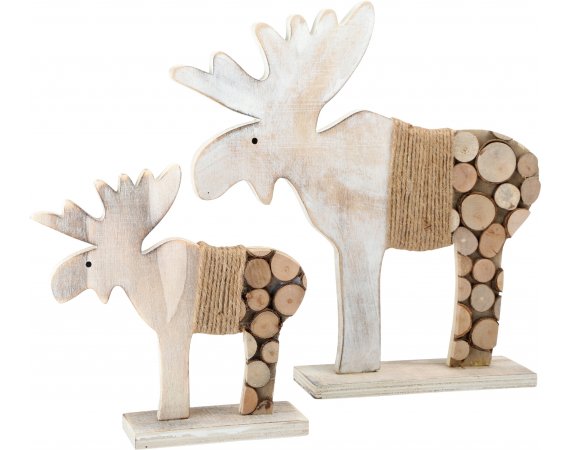 Begge disse svenske repræsentanter er meget iøjnefaldende dekorationer i juletiden. Små træskiver og snor bryder op på det lineære design.