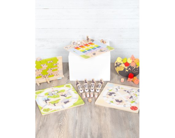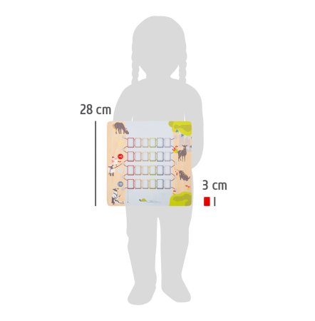 Hvert dyrene har sin egen farve og sit særlige fodaftryk – så hvert dyr kan tildeles sit eget startfelt. Udover at have det sjovt lærer børn, hvilket dyr der har hvilket fodaftryk.