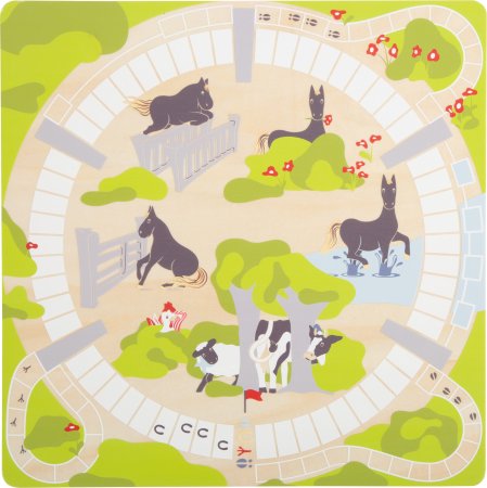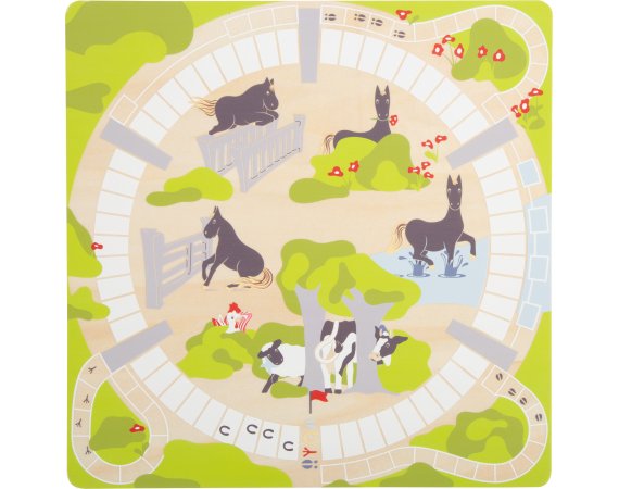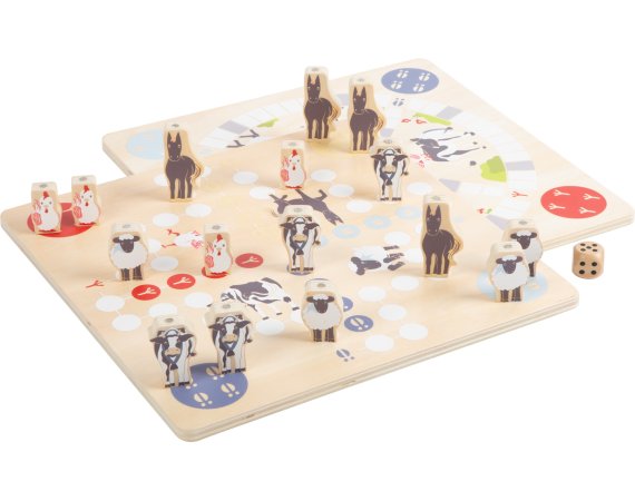 Sættet består af klassisk ludo, stigespil, hestevæddeløb og dyrestabling.