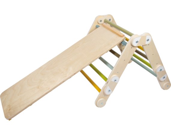 Her får du sjovt og kreativt legetøj, en rigtig allround ér som bevægelseslegetøj, med hvilken der ikke er grænser for små klatreres kreativitet! Selv yngre børn kan bruge trekanten til deres første forsøg på at stå, mens større børn kan klatre op ad trinene og bygge huler, tunneller, broer og huse.