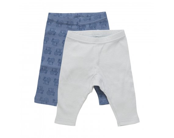 Du får et par leggings i blå med mønster, og et par ensfarvede hvide leggings.