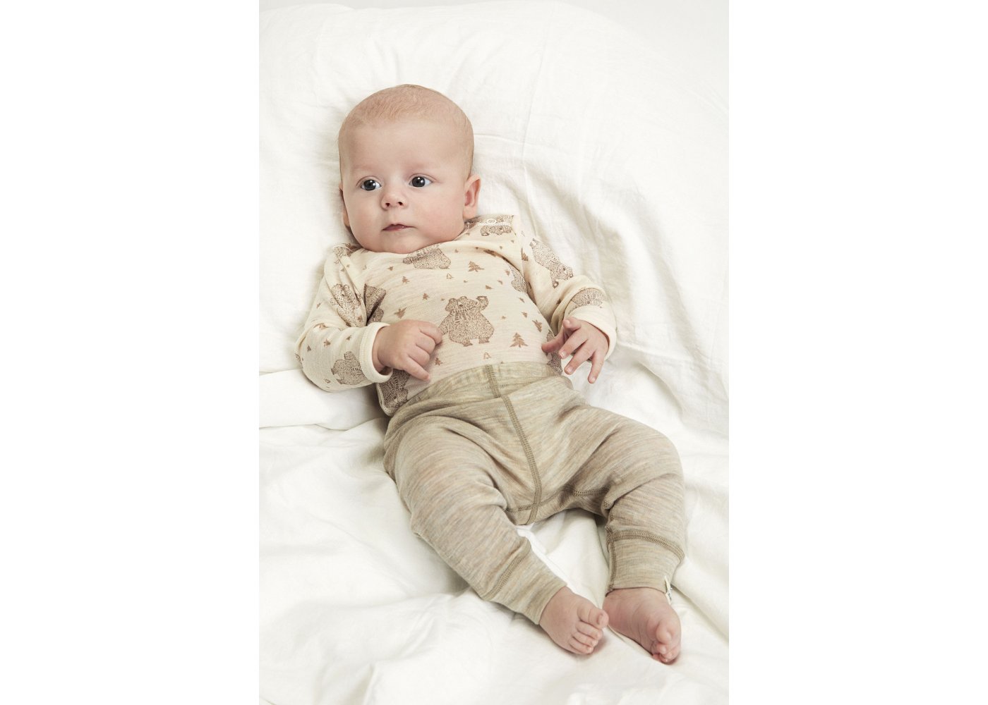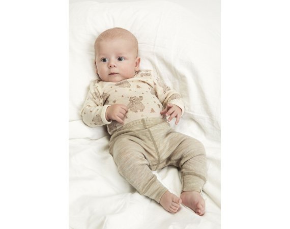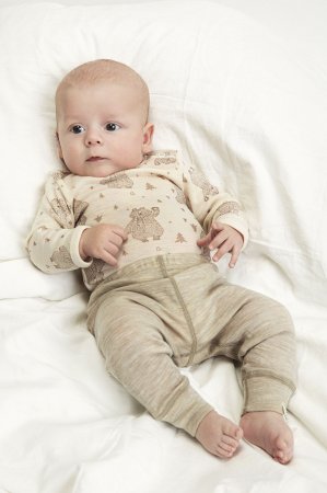 Ensfarvede rib leggings af lækker merinould. Super god pasform med elastik i taljen og ribkant ved anklerne. Fås i tre flotte farver til både drenge og piger.