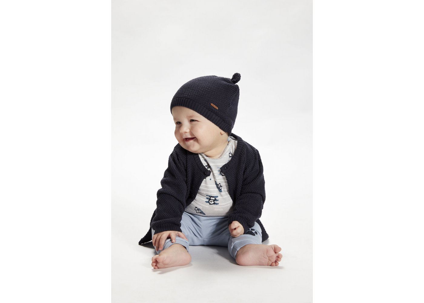 Bukserne har en bred ribkant i talje og ved ankler. Desuden en sød lille baglomme i højre side. Buksen er fremstillet i behageligt bomuldsjersey med stræk, som sikrer god pasform.