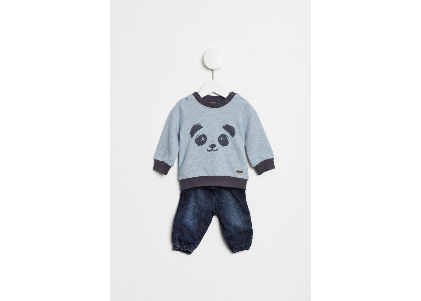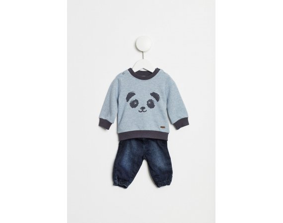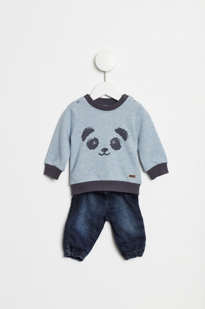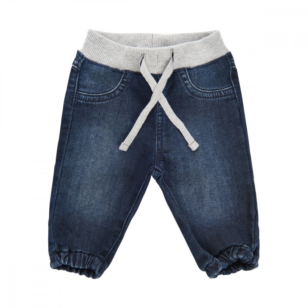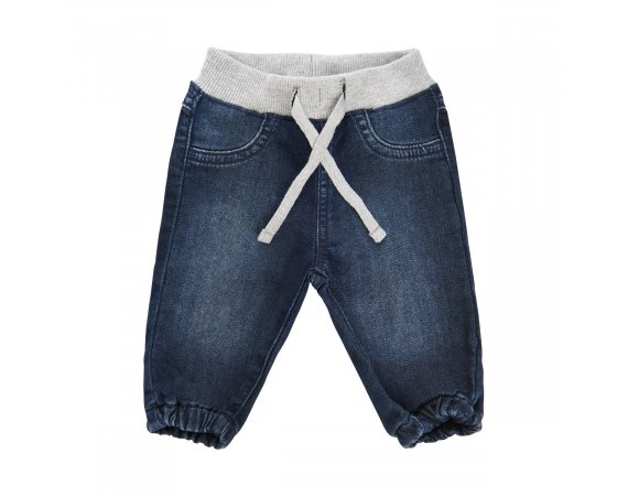 Bukserne har grå ribkant i talje og elastik ved ankler.