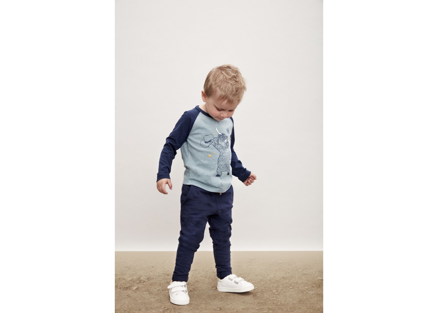 The trousers have a hem at the bottom, elastic and a tie at the waist, which makes them really comfortable to wear.