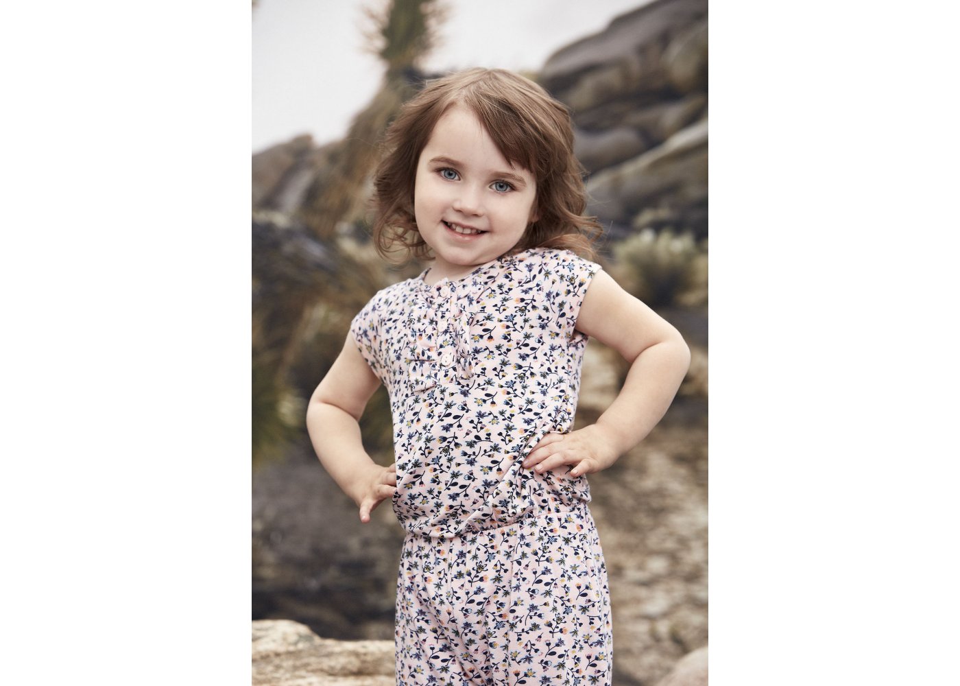 Super sej lyserød jumpsuit med all-over-print af blomster