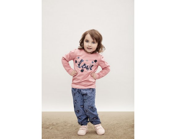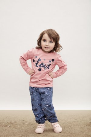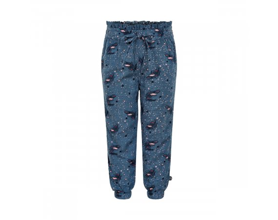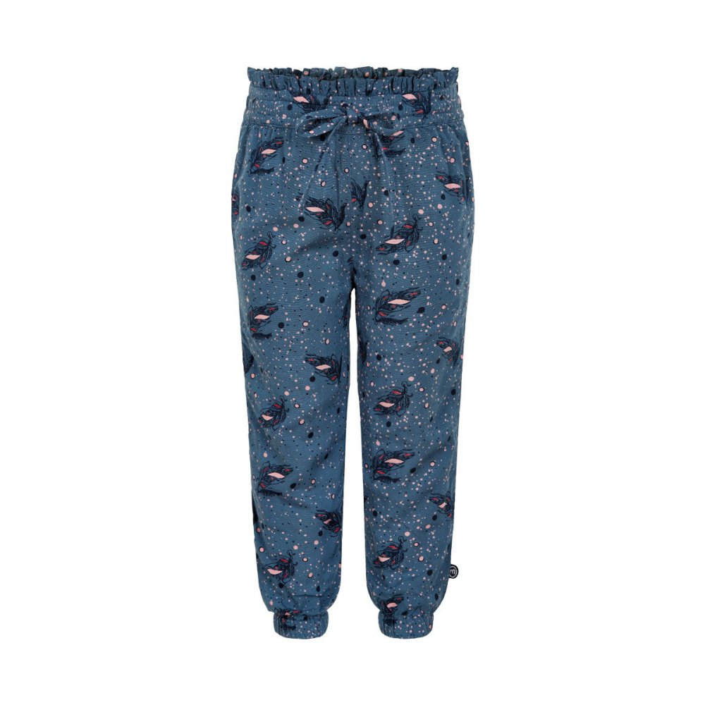 Smarte blå behagelige bukser med all-over-print af fjer og små bobler