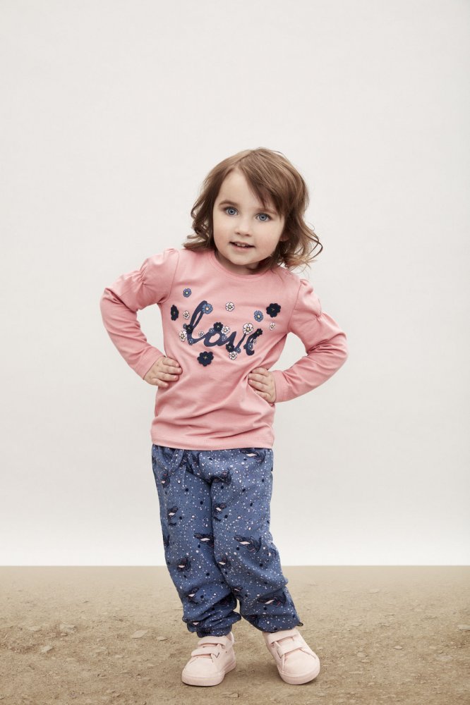 Bukserne har elastik ved ankler og en fin detalje med elastik, rynk og bindebånd i taljen.