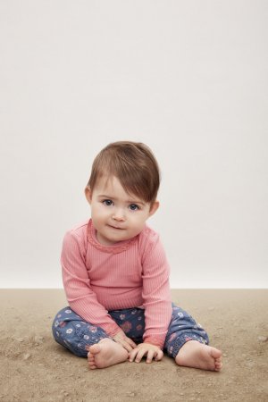 Buks med bredt smock elastik i talje med lyst ensfarvet bindebånd. Ligeledes smock elastik ved ankler. Bukserne har en god pasforn, er super behagelige at have på.